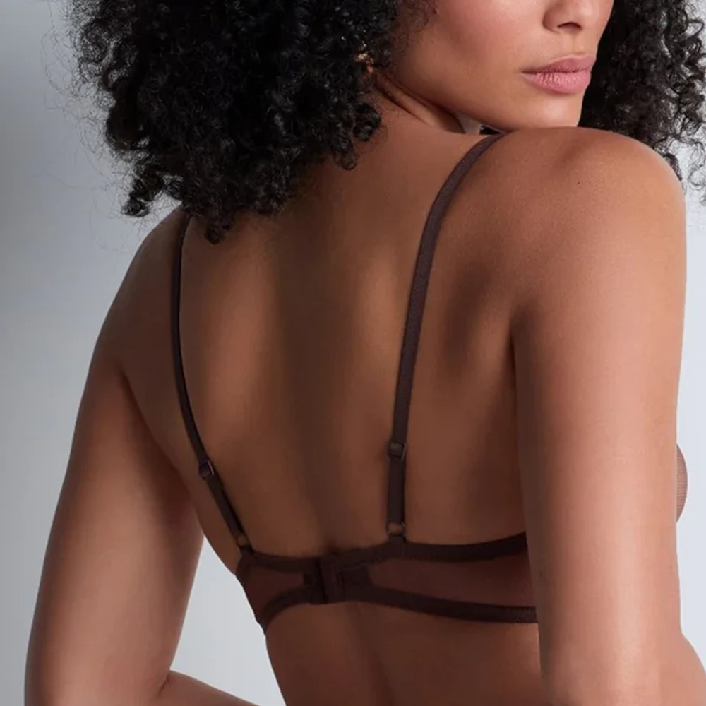 Comfortable and modern, the Sheer Emotion underwired half-cup bra features see-through moulded tulle cups for a decidedly sexy and bodyshaping effect. Thoroughly refined, it boasts an eye-catching embroidered underband that highlights the cleavage, as well as sensual gold touches between the cups and at the base of the straps.