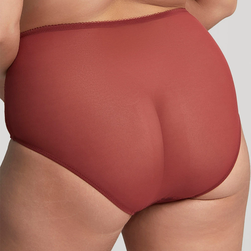 The Chi Chi High Waist Brief is designed with feminine lace trims, a centre bow and mesh back – providing you with ultimate style and comfort!