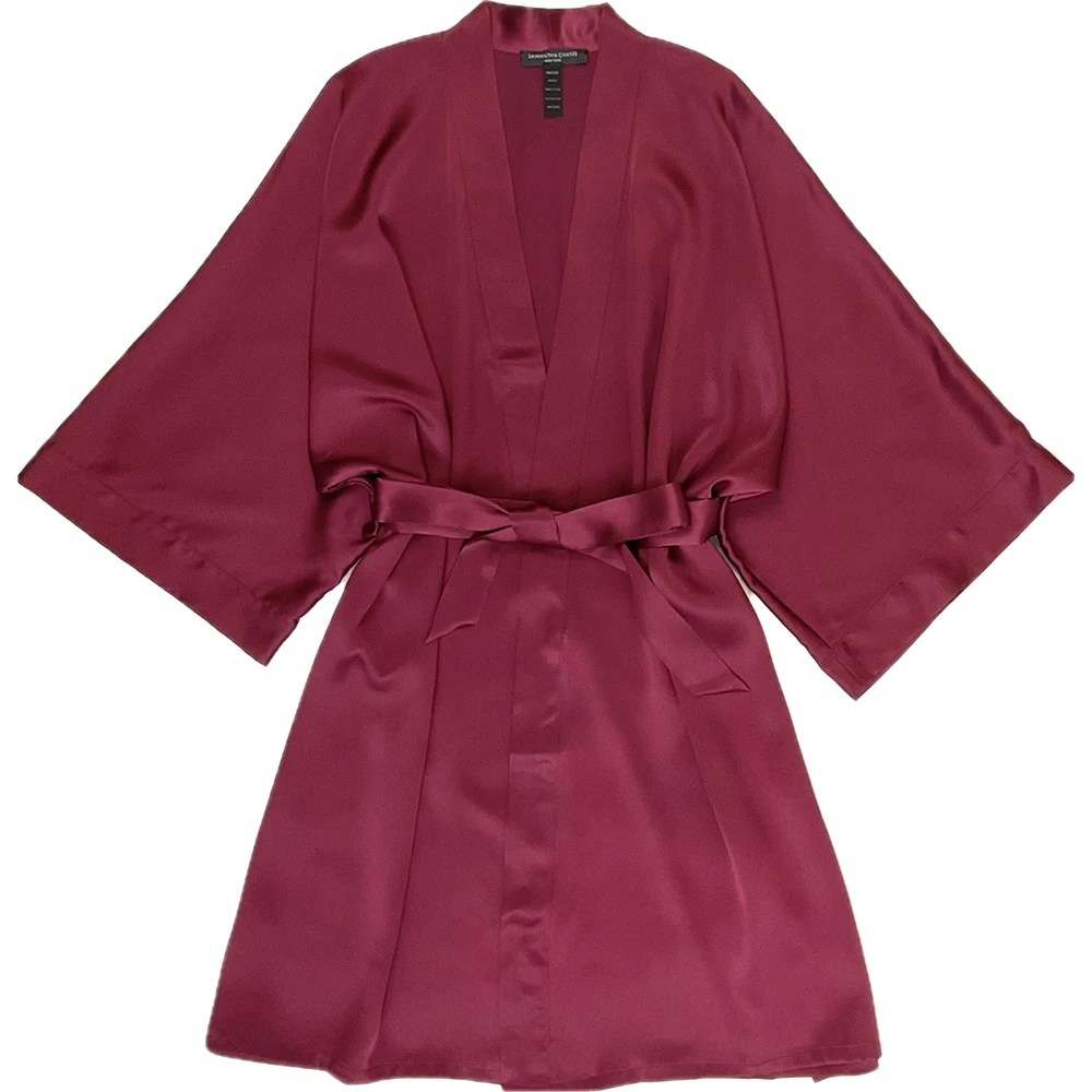 The kimono style robe is elegant, feminine and sensual. The heavy weight silk charmeuse has a soft touch and luxurious feel to the bare skin. It can be worn worn all year round.