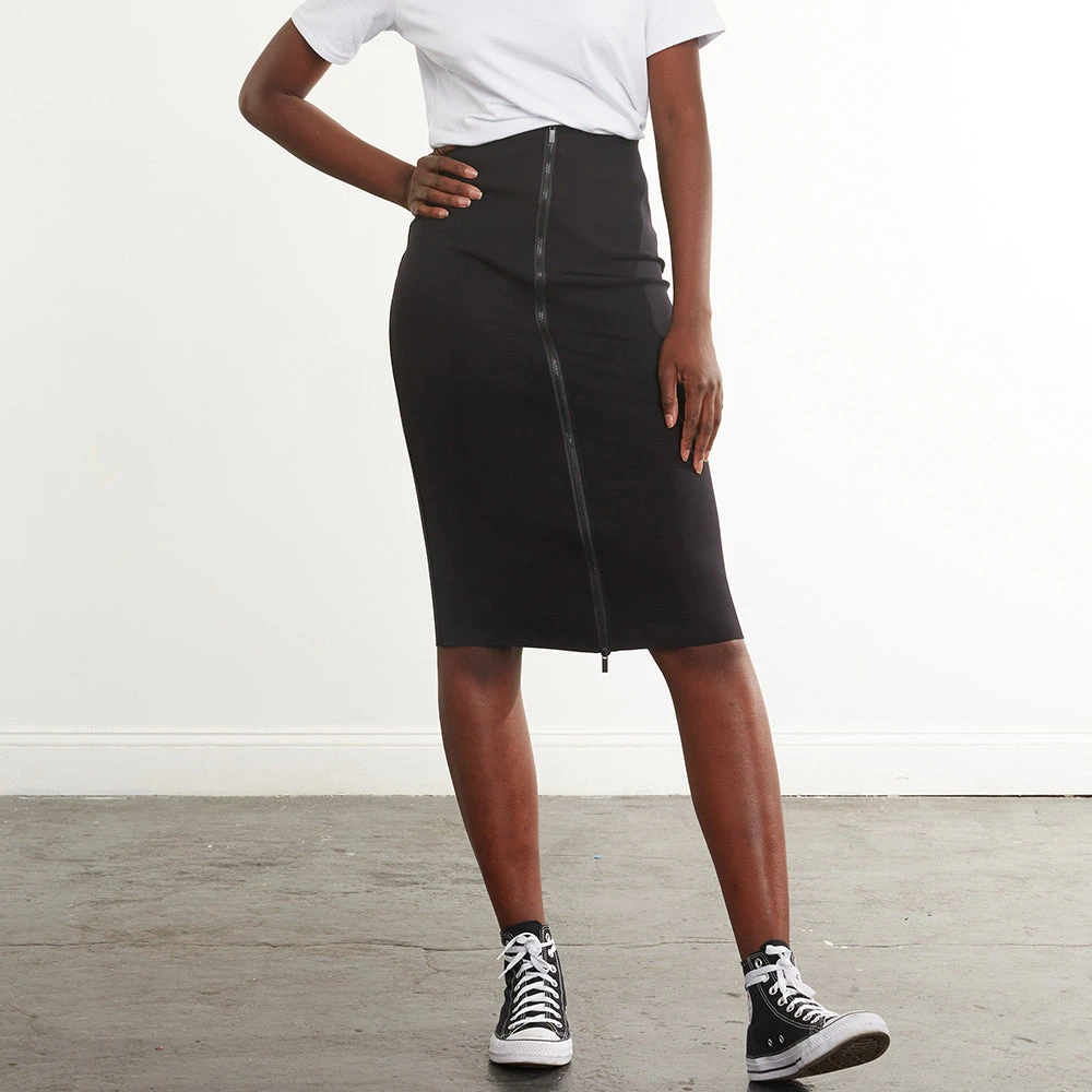 Commando’s Neoprene Zip Skirt is made from a luxe Italian neoprene featuring a flattering high-rise fit and matte zipper for a sporty finish. The best part, this skirt is reversible – so whether you opt for a more casual look with the zipper in front, or something a bit more polished, this skirt has you covered.