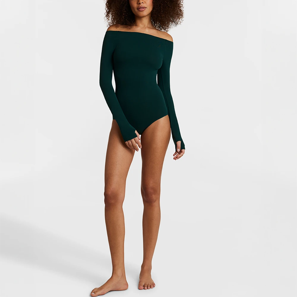 The perfect off the shoulder bodysuit from Commando. Lots of stretch and soft material; where it everywhere!