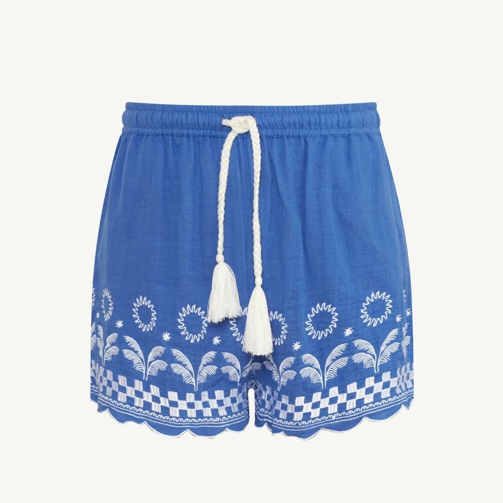 Delicately feminine beachwear. Daya is our organic cotton collection of embroidered beach styles this short features an elastic drawstring waist for an effortless fit, side seam pockets, and contrasting embroidered trim.