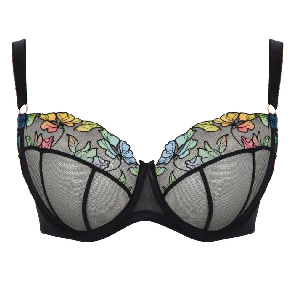 The four part, sheer cup has panel of beautiful colors and flowers. It elevates your every day wardrobe and leaves you feeling beautiful!