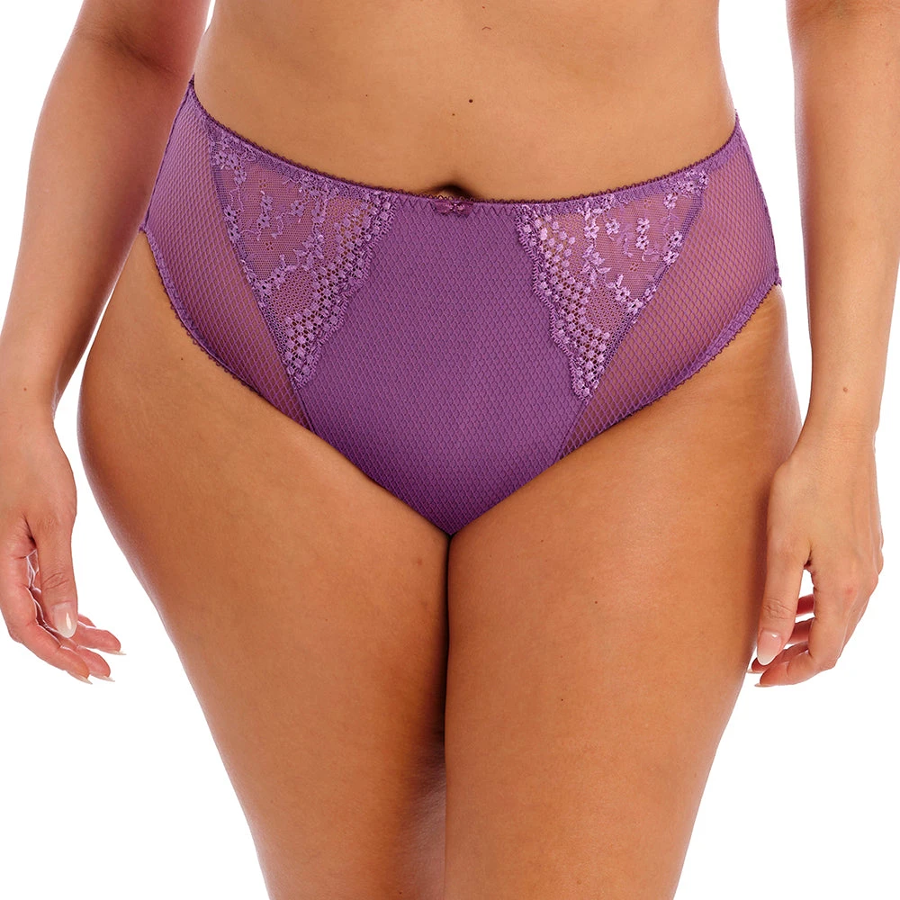 Explore Elomi’s Charley High Leg Brief, with cotton lined diamond mesh front and embroidered side paneling in a care-free Pansy hue.