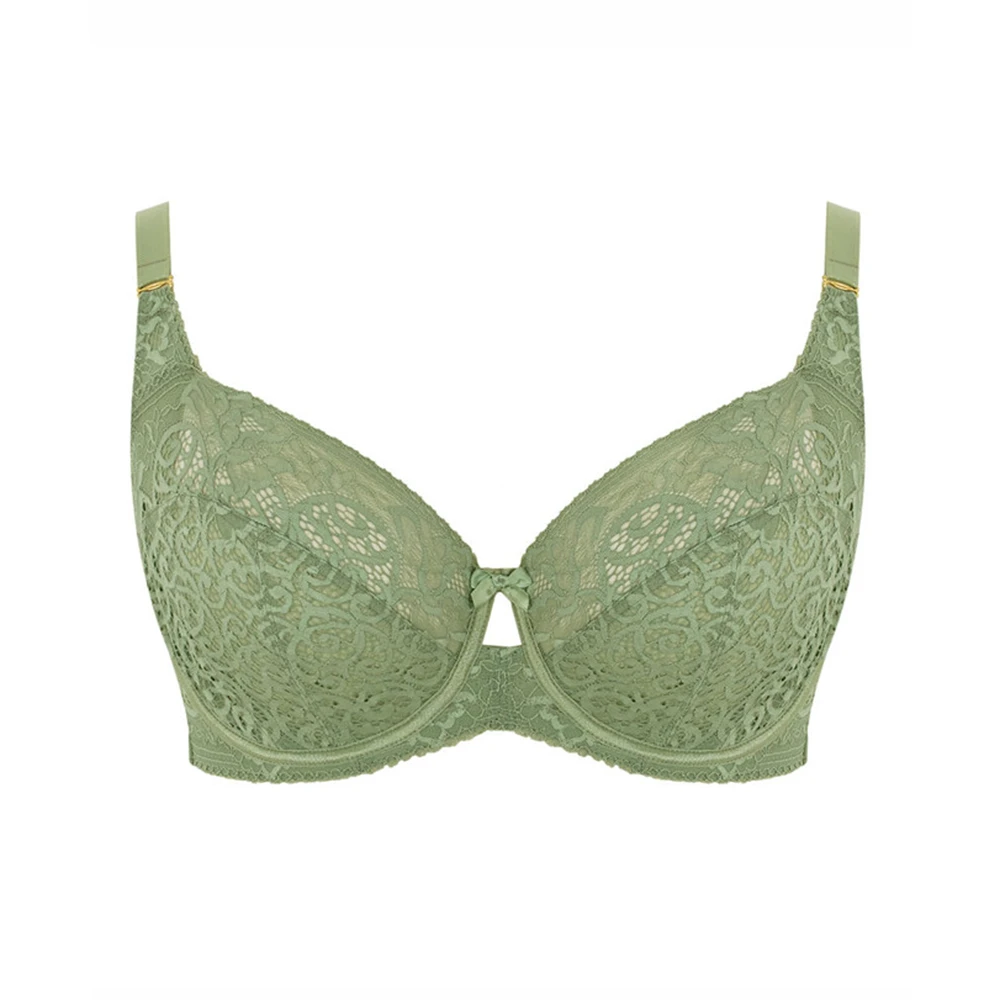 - Stretch lace top cup paired with lined bottom cups offer an accommodating fit for all bust types