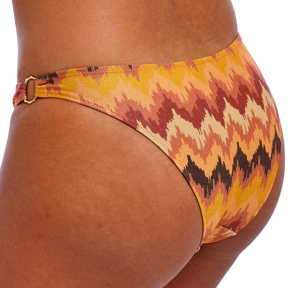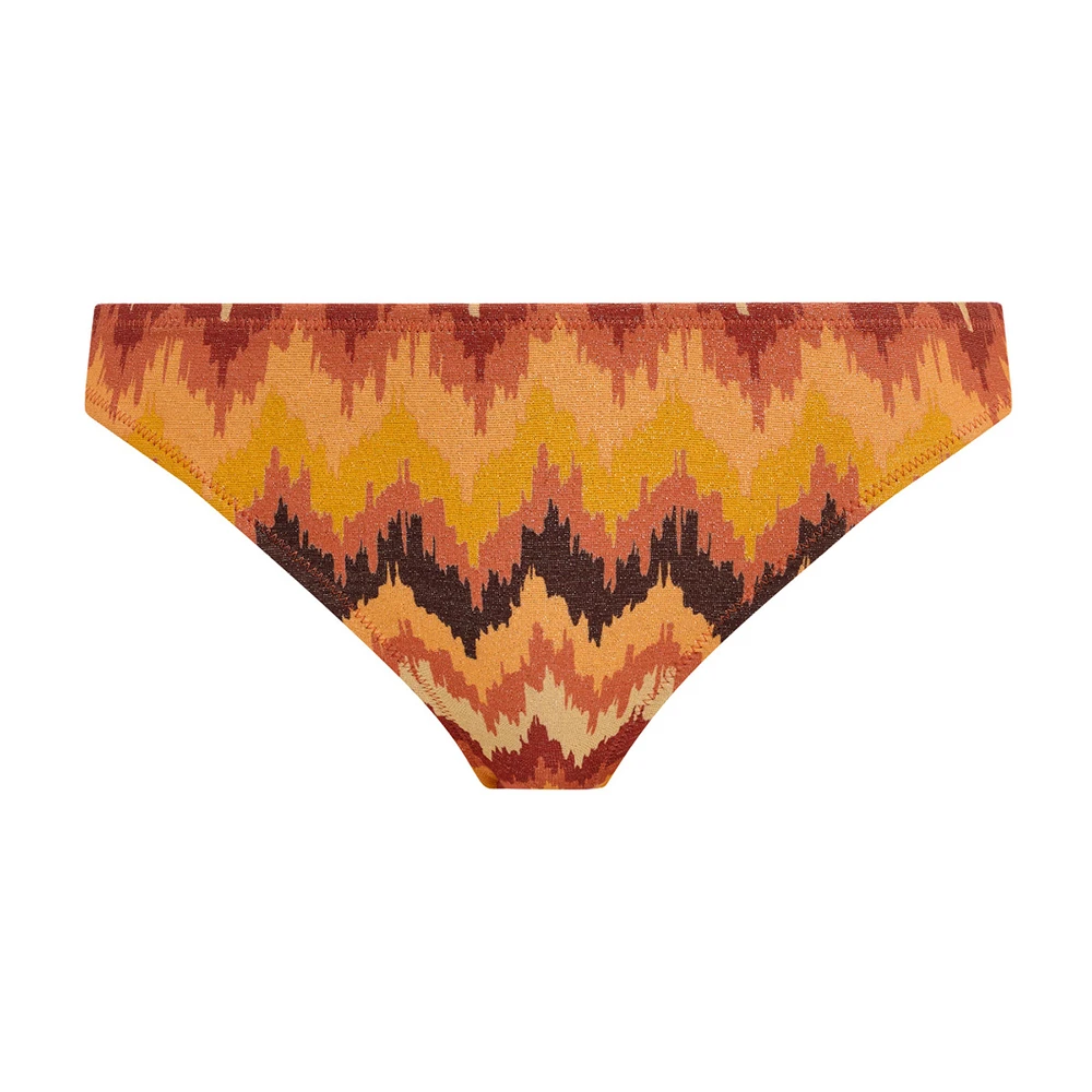 Step into summer with the Arizona Wave Bikini Brief in Horizon! This stunning design is a sunset captured in swimwear form! Crafted from sparkly metallic yarn that glistens in the sunlight, the wave pattern design combines hues of dusty pink, rusty bronze and sun-baked golds for the ultimate summer style.
