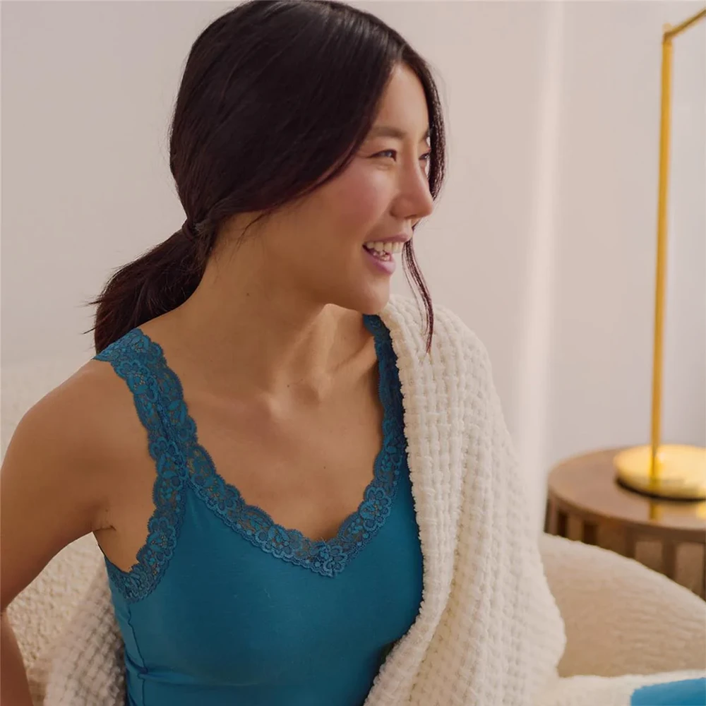Fleur’t’s Lace Strap Camisole is the perfect go-to layering piece. Soft and subtle, this cami can be worn underneath most tops, blouses and knits – yet covered enough to be worn on hot summer days and nights. Made of cloud-soft, eco-friendly fabric and edged with 1 inch delicate stretch lace.