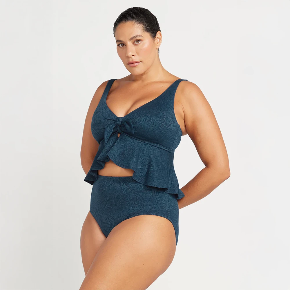 High Waist – This swim pant is a high waist design with moderate bottom coverage. This swim pant is designed to fit under a tankini top or with a bikini top to make the perfect curve fit or plus size swimwear set.