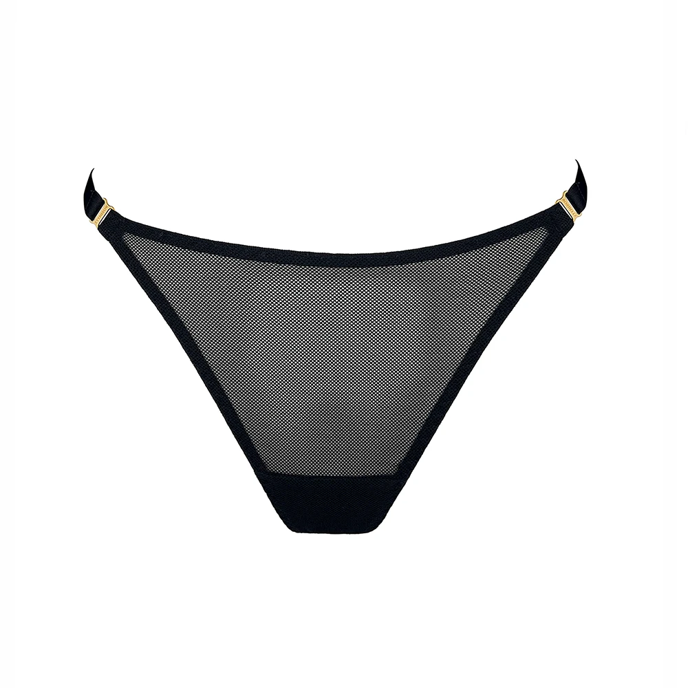A refined essential style, this sheer open-knit mesh thong is designed for everyday wear, with thoughtful details to ensure comfort and ease when wearing. Its minimal design offers the perfect addition to any Nara set, ideal for layering beneath a suspender or harness due to the swan hooks at the top of the thong strap. Clean lines and careful details make this a versatile, easy-to-style lingerie essential.