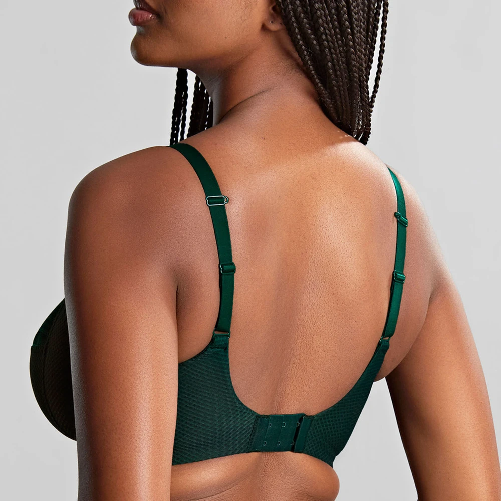 Quickly becoming a new customer favourite, the Serene Full Cup bra in dark green is welcomed in a gorgeous green shade this season. Ultra smoothing lace keeps you feeling comfortable all day long. Specially engineered stretch lace top cups are created with super soft fabric that molds to you body and gives a forgiving fit as your bust fluctuates in size throughout the month.