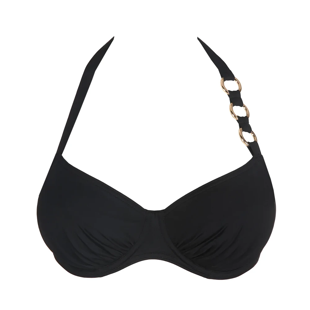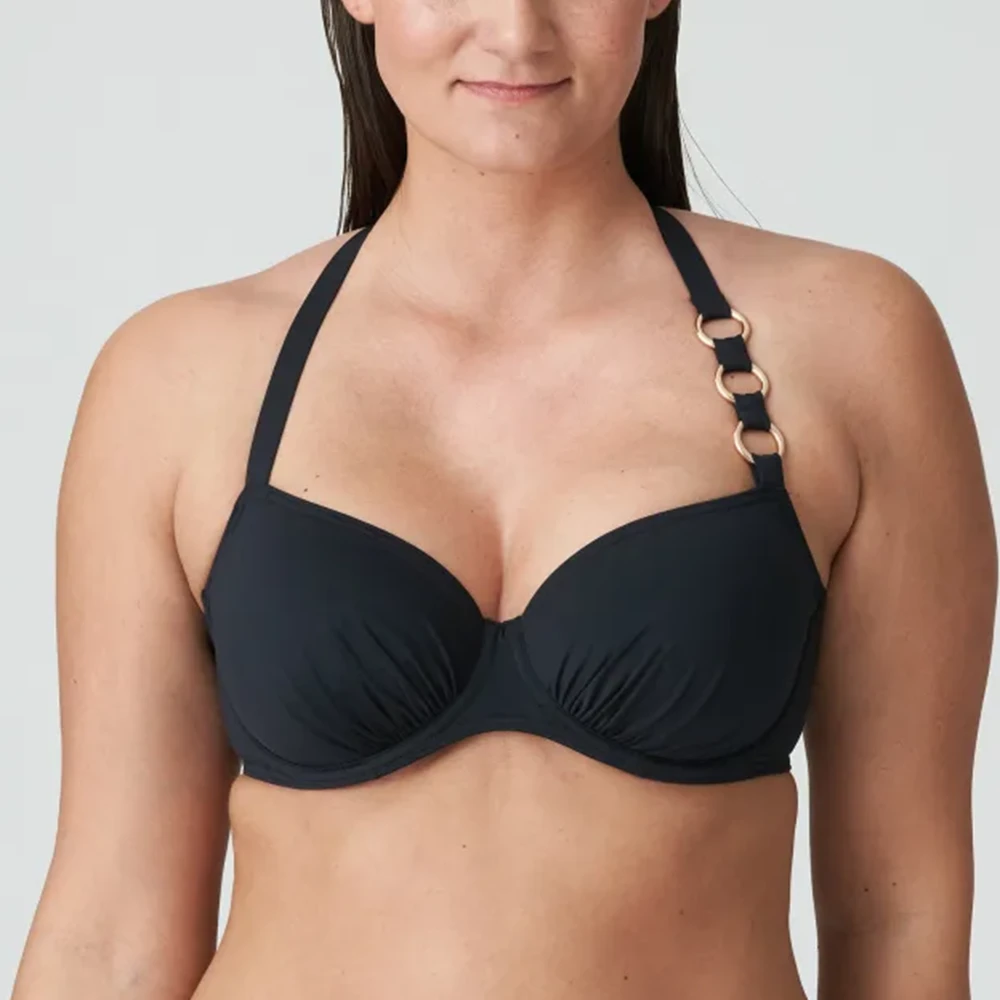 Minimalist underwire bikini top with full cups. Gold-toned rings attached to the straps create a cool Y2K look.