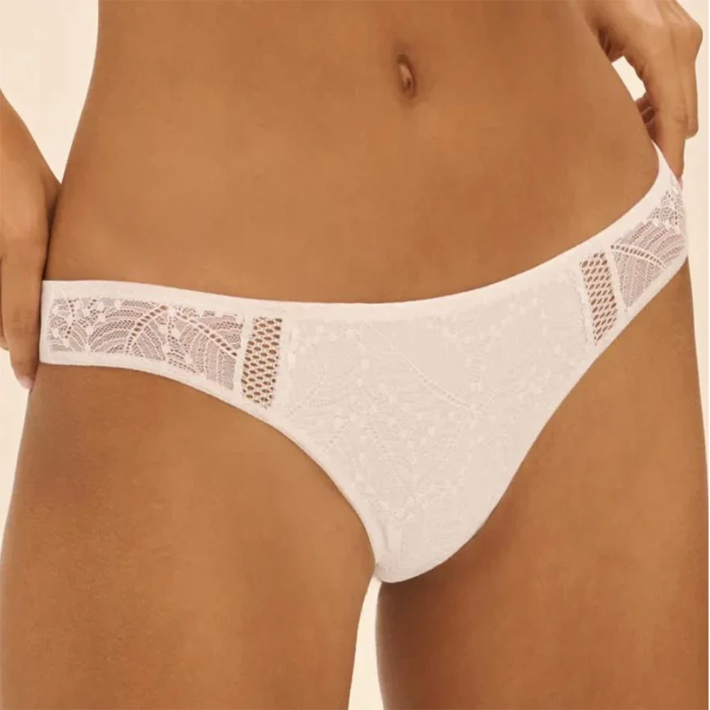 Get the best of both worlds with this bikini – a stunning French lace front and a comfortable, seamless microfiber back. You’ll look effortlessly elegant with the perfect combination of style and comfort. Double win!