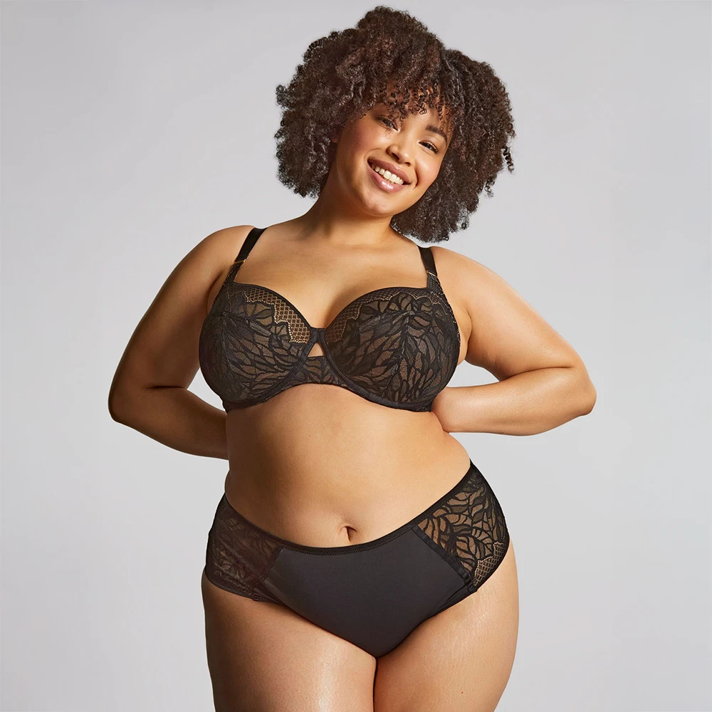 On the lookout for body-loving lingerie, with absolutely no compromise on style, whatever your size? We promise Sophia will tick all your boxes. Made from a show-stopping lace combining dramatic florals with geometric diamonds, you won’t fail to feel empowered by the first thing you put on in the morning. And did we mention she’s made from recycled materials? Consciously developed, and as comfortable as she is chic, Sophia has it all.