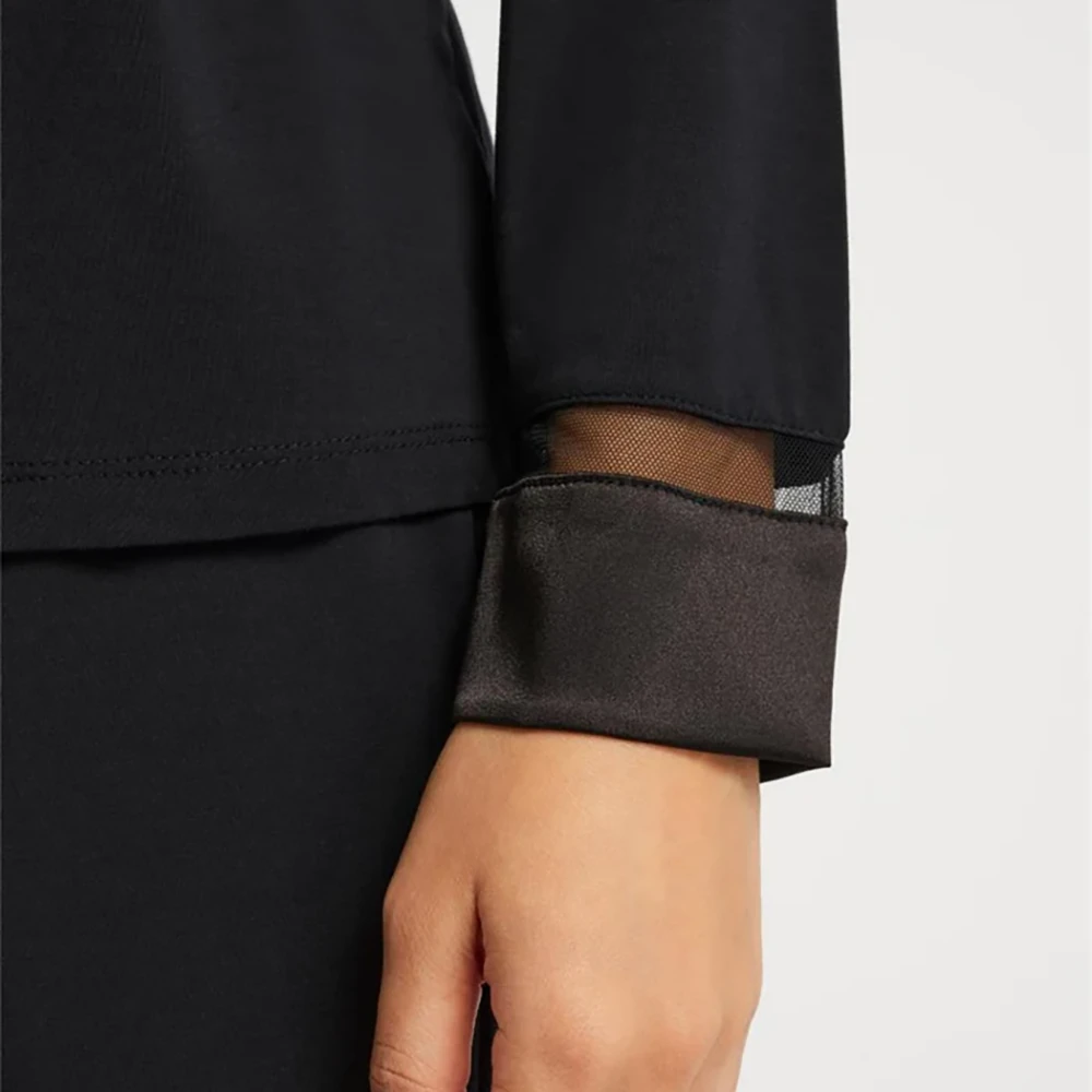 When we say, ‘get your beauty sleep’, we mean slip on this luxurious PJ set. Enjoy the stylish mesh details, ultra-soft modal fabric, and satin drawstring.