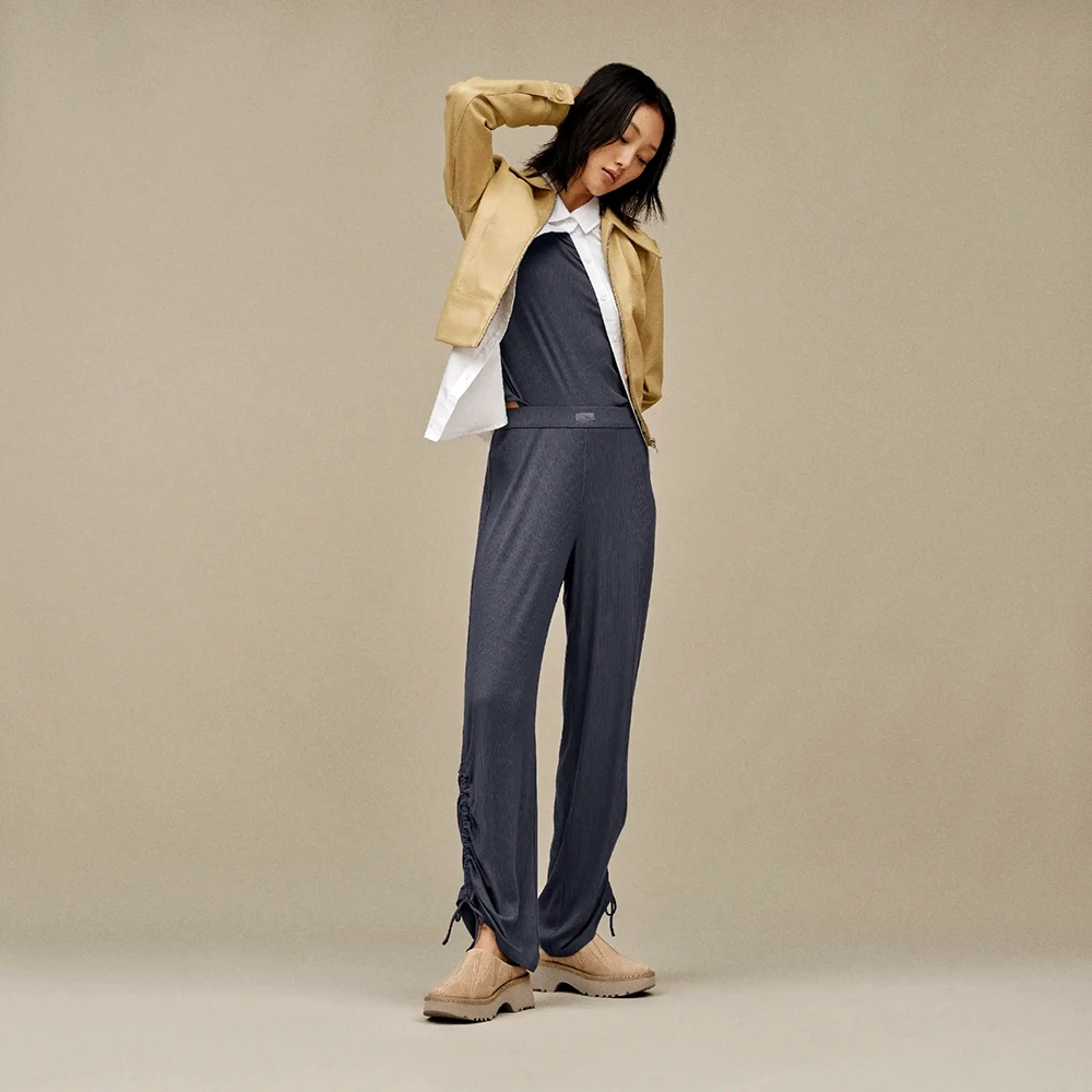To ruche or not to ruche, that is the question. The answer is in your hands with the Vyanna Pant Rib. Made with super soft ECOVERO™ viscose and a high rise, you’ll be set to lounge as long as you want in these ribbed bottoms.