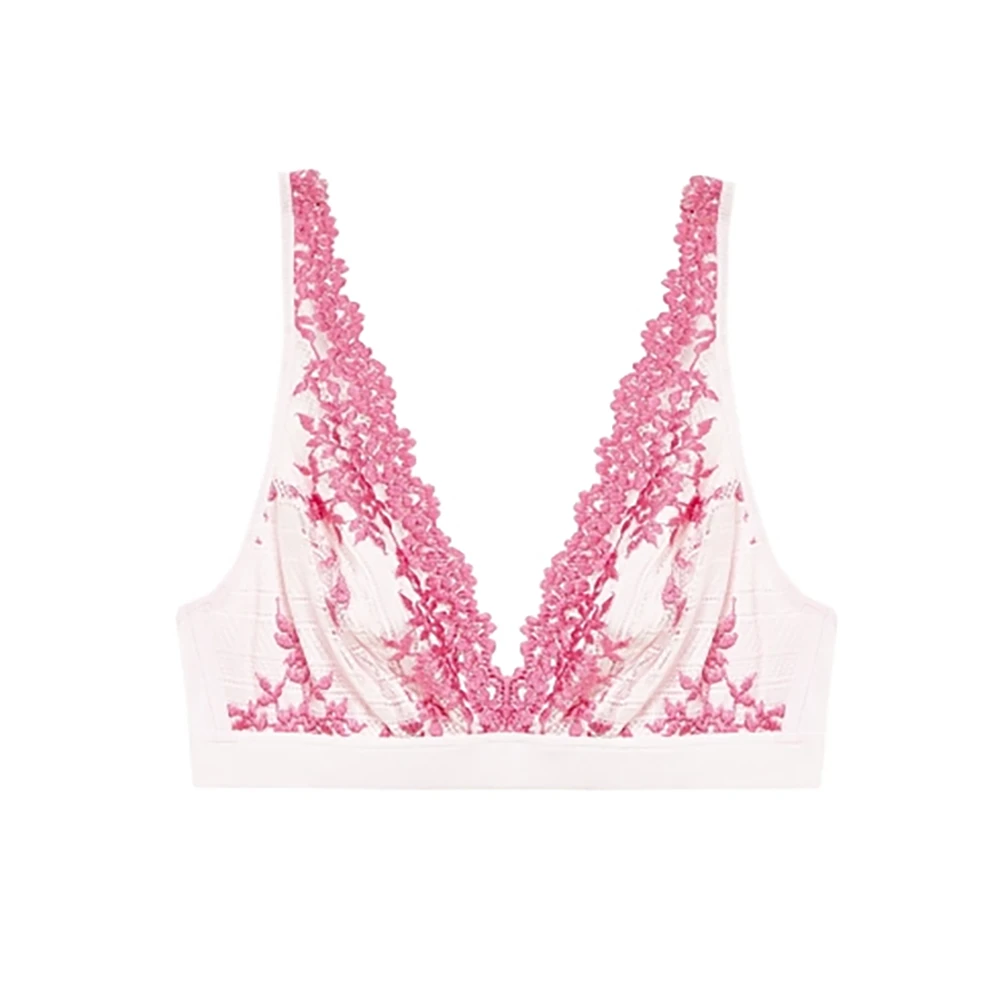 Lace cups, camisole straps and a wide bottom band make this supportive bralette your go-to for effortless elegance.